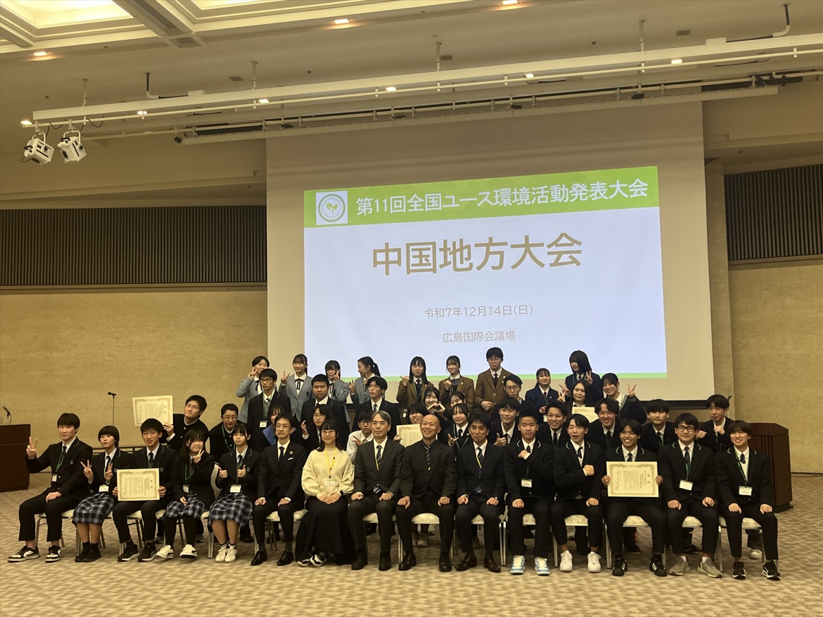 【工業化学科】第11回全国ユース環境活動発表大会 中国地方大会で「審査委員特別賞」を受賞しました 2025年12月24日2025年12月23日 令和7年12月14日(日)、広島国際会議場で開催された「第1…