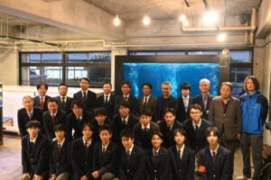 令和7年11月19日(水)、本校電子機械科棟にて、日軽形材株式会社様からご寄贈いただいた陸上養殖水槽「ARK ZERO」の寄贈式と、電子機械科が製作した5t水槽のお披露目会を行いました。