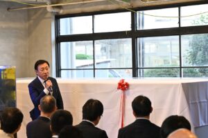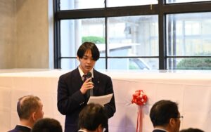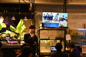 その後、化学研究部とコンピュータ部の生徒が研究プレゼンテーションを行い、本校の取り組みや成果を紹介しました。式の終盤には水槽の除幕式を実施し、新設備のお披露目に会場は大いに盛り上がりました。