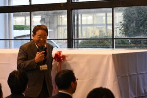 生徒会による開式あいさつ、校長挨拶、来賓紹介の後、日軽形材株式会社 佐々木社長よりご挨拶と事業紹介があり、目録贈呈が行われました。続いて、生徒会長が感謝の言葉を述べ、企業・大学の来賓の方々から温かい励ましのメッセージをいただきました。