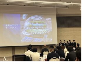 本校は、課題研究で取り組んできたアクアポニックスについて、「好適環境水を利用した持続可能な食料生産システムの研究」をテーマに発表しました。発表後には、各出場校の高校生と交流の時間も設けられ、生徒たちは他校の取組から多くの刺激を受け、環境活動に対する視野を広げることができました。