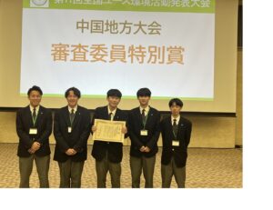 【工業化学科】第11回全国ユース環境活動発表大会 中国地方大会で「審査委員特別賞」を受賞しました