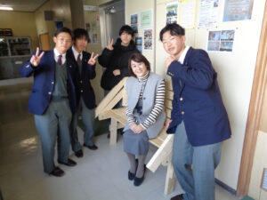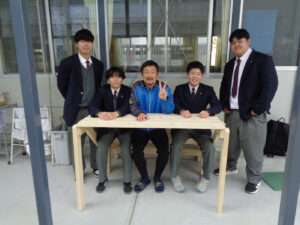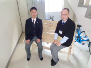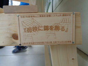 設備システム科3年生の「課題研究」の授業で製作したベンチを自分たちの母校である中学校(竜操、御津、旭東、加賀、操南、西大寺)に贈らせていただきました。