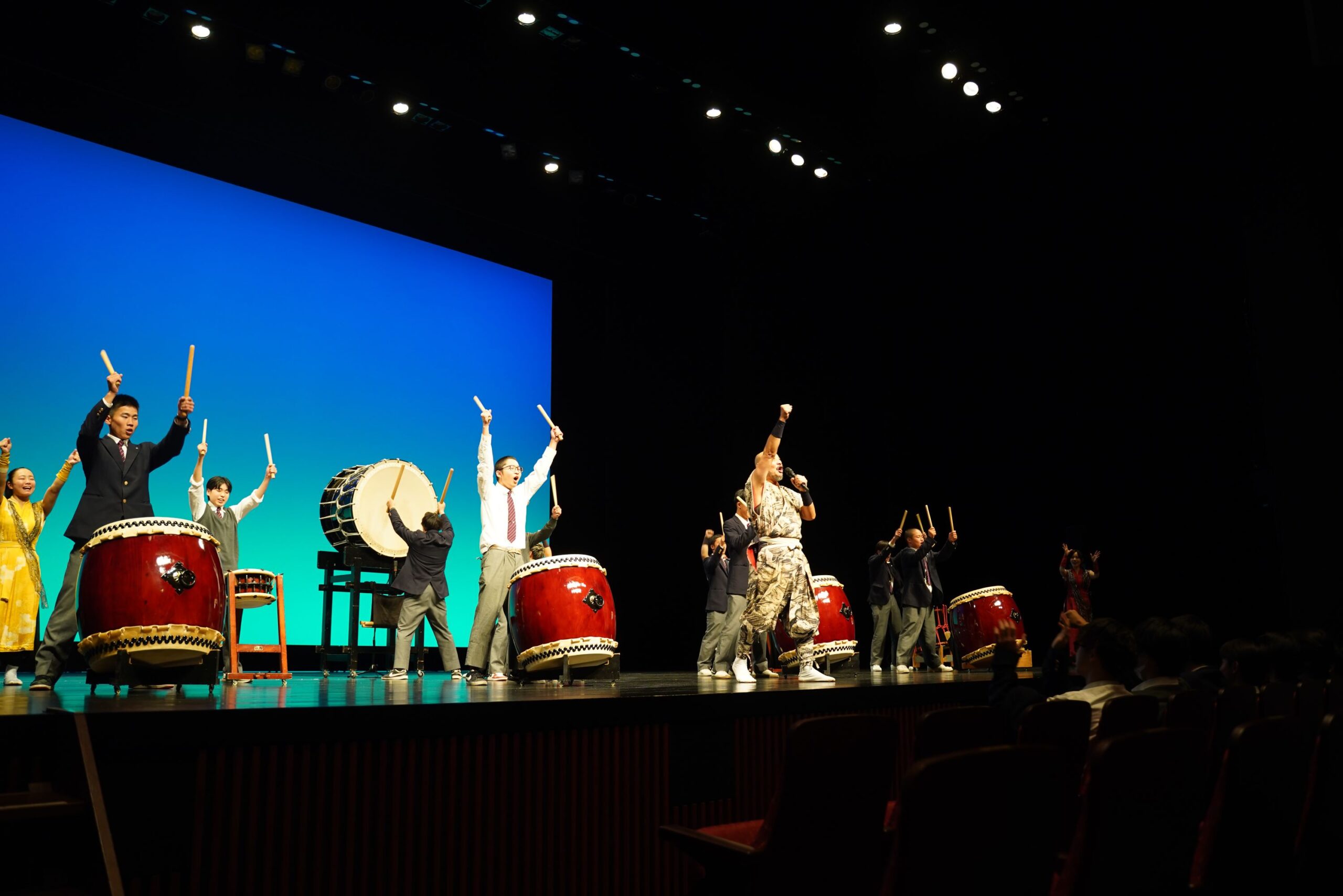 和太鼓の力強い音色と迫力ある演出に、生徒たちは終始引き込まれ、日本の伝統文化の魅力を間近で感じることができました。