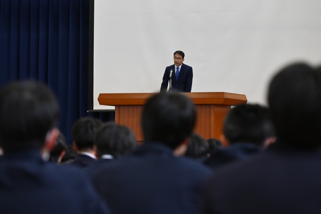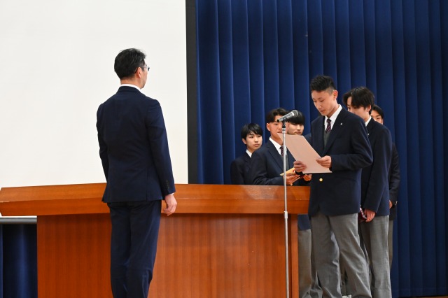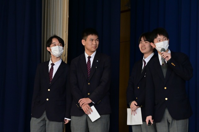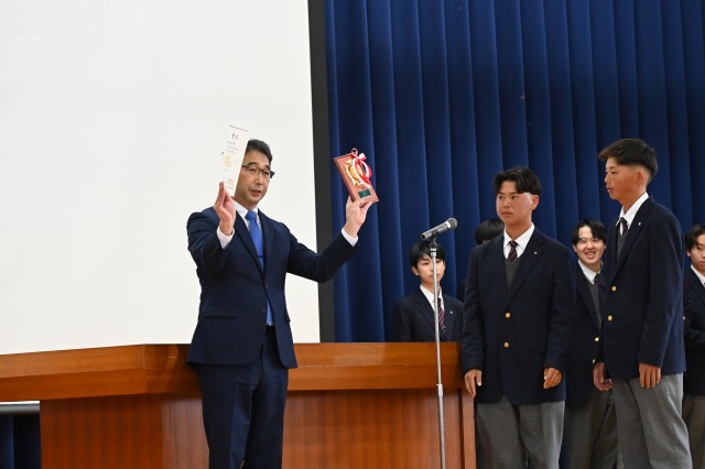 納付式では、陸上競技部、バドミントン部、ソフトテニス部、東工アルテミスプロジェクトが各種大会で獲得した賞を披露しました。