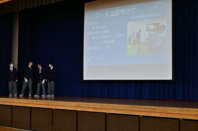 終業式の後には、電気科2年生によるデュアルシステム発表会が行われました。